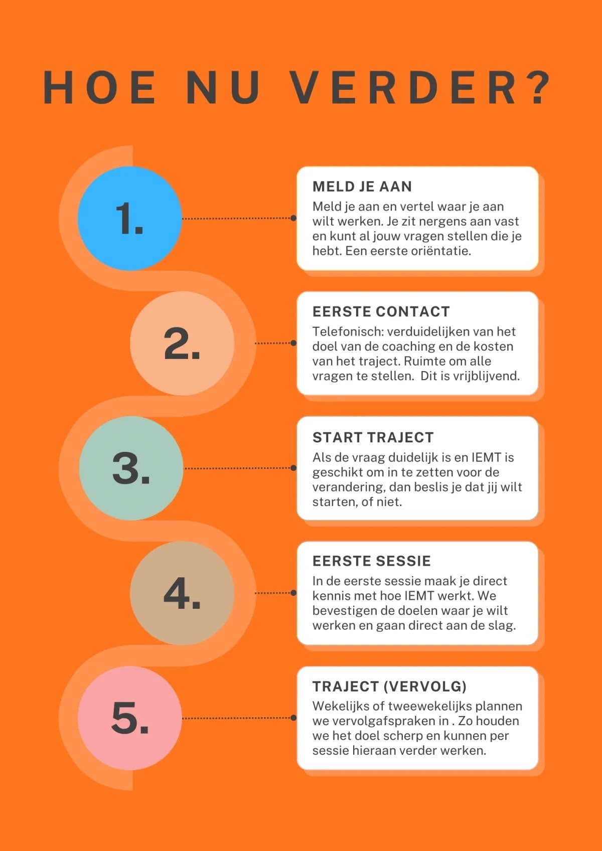 Als mijn aanpak resoneert bij jou en IEMT is geschikt voor jouw verandering die je wilt bereiken, dan starten we het traject.