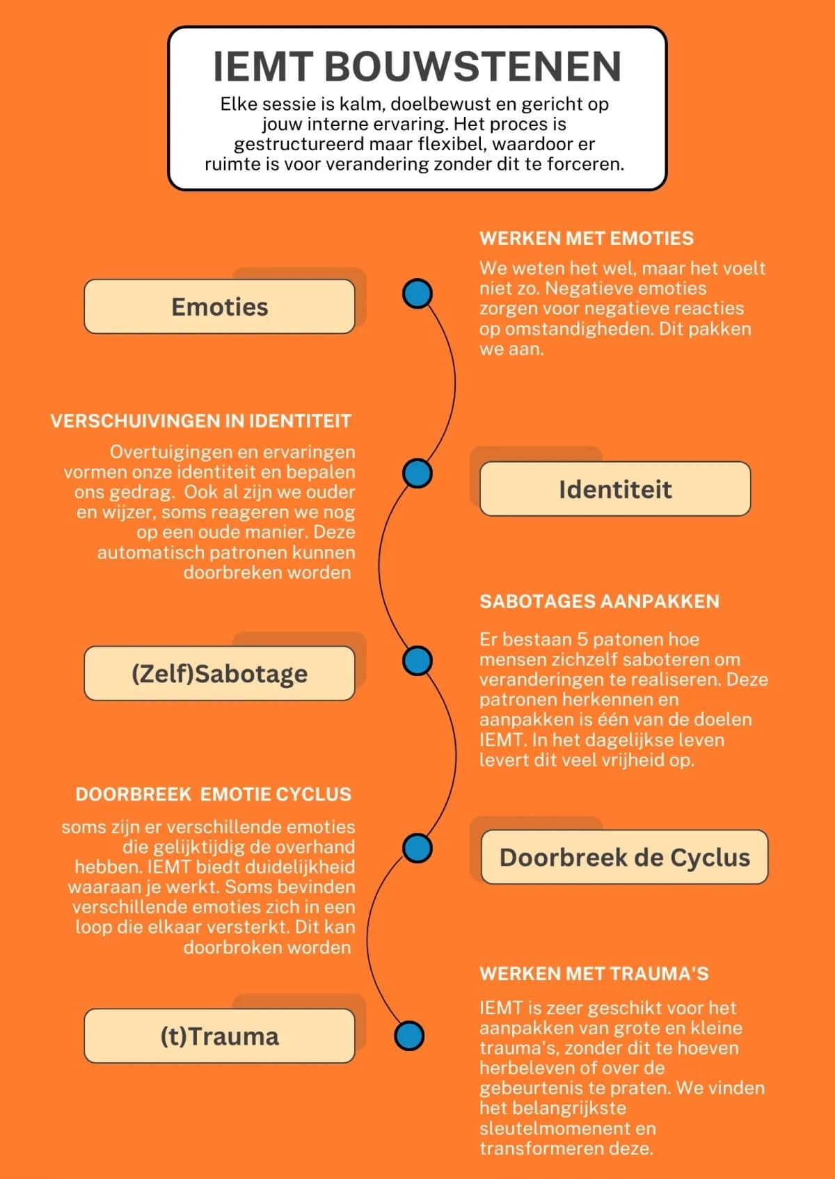 De IEMT practitioner training bestaat uit twee delen. In het eerste deel leer je werken met emotionele imprints. In het tweede deel gaan we aan de slag identiteit re-imprints.